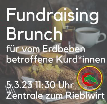 Der Fundraising-Brunch am 5. März 2023 in der Zentrale zum Rieblwirt war gut besucht und brachte viele Menschen zusammen, die die vom Erdbeben betroffenen Kurd:innen unterstützen wollten. Bei einem gemeinsamen Frühstück entstanden anregende Gespräche, und es konnten wichtige Spenden gesammelt werden. Vielen Dank an alle, die teilgenommen und solidarisch mitgewirkt haben.