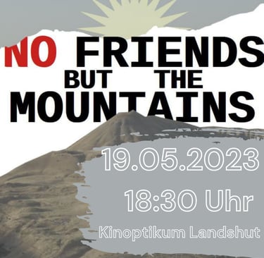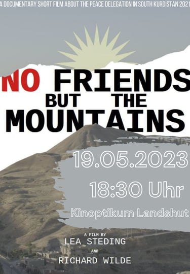 Die Vorführung des Dokumentarfilms „No Friends but the Mountains“ am 19. Mai 2023 im Kinoptikum Landshut wurde gut besucht und bot dem Publikum einen klaren Einblick in die politische Situation in Südkurdistan. Der Film begleitet die Reise einer europäischen Friedensdelegation, die im Sommer 2021 vor Ort die Entwicklungen des sich zuspitzenden Angriffskriegs der türkischen Regierung untersuchte und versuchte, internationales Augenmerk auf die Lage in der Region zu lenken.