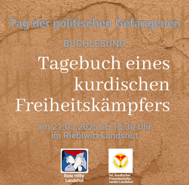 Die Lesung „Tagebuch eines kurdischen Freiheitskämpfers“ zum Tag der politischen Gefangenen am 21. März war gut besucht und bot einen eindrucksvollen Einblick in persönliche Erfahrungen aus dem kurdischen Widerstand. Die Veranstaltung im Rieblwirt Landshut ermöglichte einen intensiven Austausch über politische Repression, Widerstand und die Bedeutung von Solidarität. Vielen Dank an alle Besucher:innen sowie an die Rote Hilfe Landshut für die Zusammenarbeit